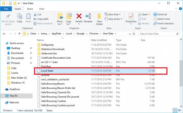 Bước 3: Tìm và xóa file có tên 'Local State'.