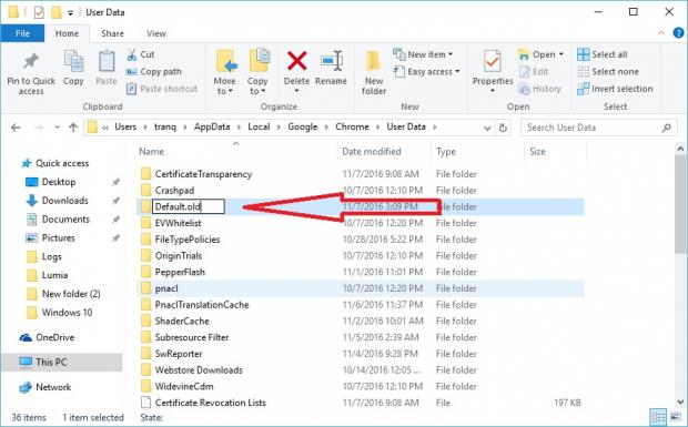 Bước 3: Tìm và đổi tên thư mục Default thành Default.old