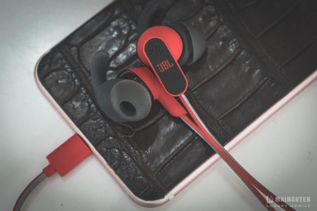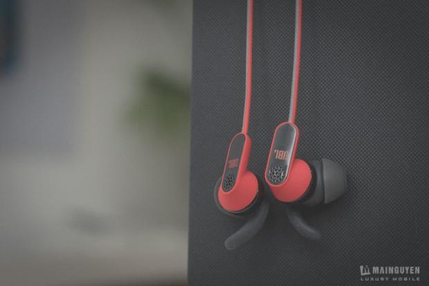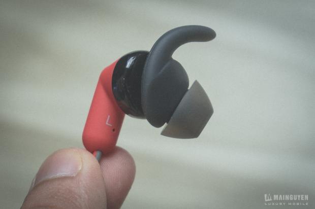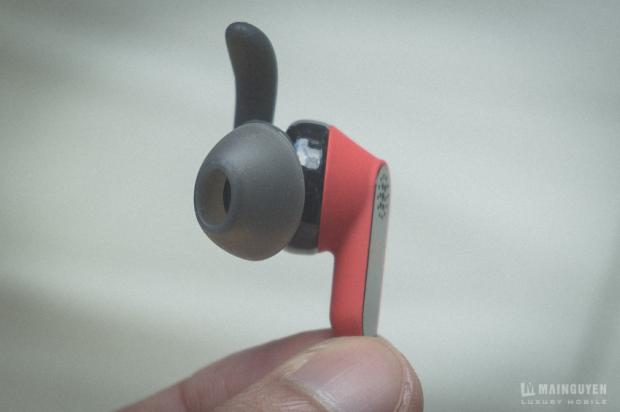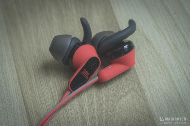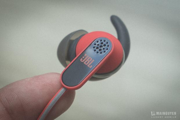 Hãng cho biết phần đệm tai có thiết kế công thái học dạng hình nón kết hợp với eclipse thay vì dạng tròn và thật sự thì cảm giác đeo vào khá thoải mái, không bị cấn hoặc đau tai khi đeo lâu. Mặt ngoài của earbud là một dải nhựa cứng, bóng. Bên trên đó là cụm nhiều lỗ mic với tác dụng nhận âm thanh từ môi trường bên ngoài vào để phục vụ cho chống ồn và công nghệ đáp ứng âm thanh. Đây là chức năng khá quan trong và nổi bật trên JBL Reflect Aware, mình nói ở phần dưới sau. Bên dưới là cụm điều khiển khá là to, bề mặt được bọc cao su, trên đó ngoài các nút bấm cơ bản như tăng giảm âm lượng, play/pause bài hát thì chúng ta còn có một nút kích hoạt hoặc vô hiệu hóa tính năng chống ồn. Để ý kỹ, phần dây và các mối nối được làm khá chắc chắn, kích thước dây to, cho cảm giác cực kỳ tinh tưởng và hoàn thiện sắc xảo, khá là 'chất'.