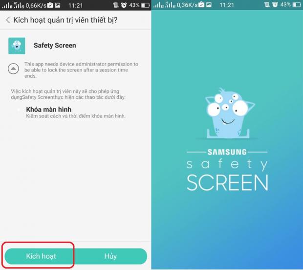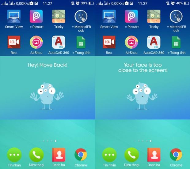 Đây là một ứng dụng rất hữu ích mà Samsung phát triển để bảo vệ mắt cho trẻ em, có tên là Samsung Safety Screen. Khi chạy ứng dụng, những lúc nào trẻ em để thiết bị quá gần mắt thì thiết bị sẽ lập tức nhắc nhở để trẻ em đưa ra xa thì mới có thể tiếp tục sử dụng bình thường. Bạn có thể tải về trên CH Play: