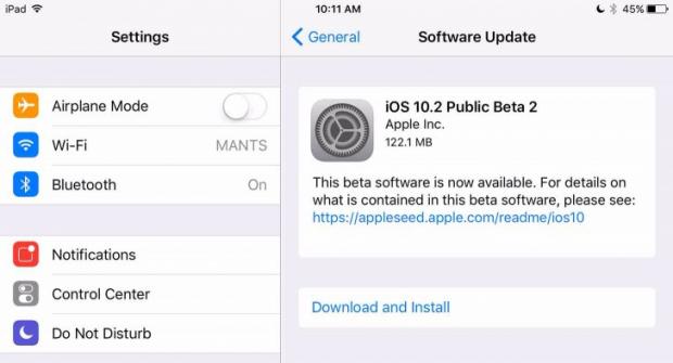 Theo Gsmarena, nếu bạn là người tham gia vào chương trình thử nghiệm của Apple thì phiên bản iOS 10.2 beta 2 đã có sẵn để bạn tải về, bạn có thể vào Cài đặt, Cài đặt chung, Cập nhật phần mềm để nâng cấp.