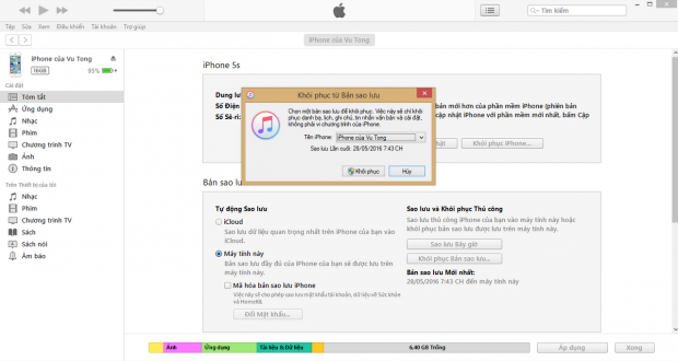 Cuối cùng hãy tìm kiếm và chọn thiết bị của bạn trong iTunes. Quan sát vào ngày tháng, kích thước tập tin sao lưu và chọn dữ liệu phù hợp nhất.