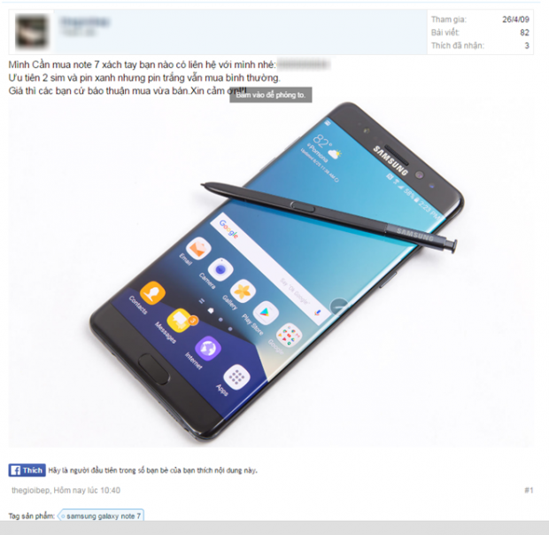 Một tài khoản tìm mua Samsung Galaxy Note 7 trên diễn đàn Nhật Tảo.