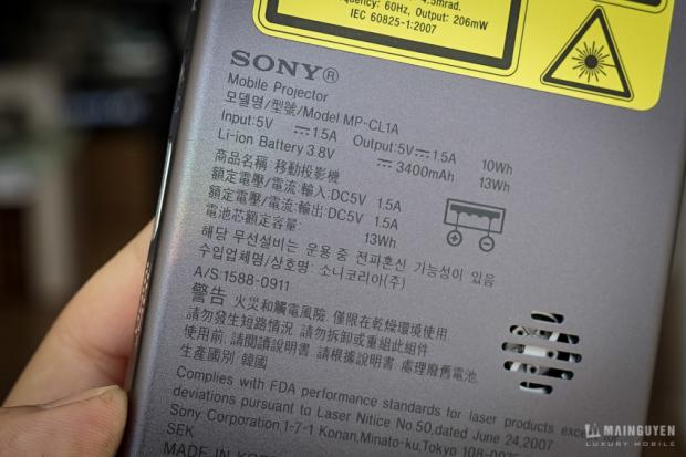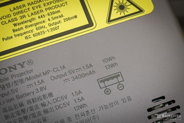 Để tối ưu cho nhu cầu trình chiếu di động, Sony MP-CL1A cũng được tích hợp viên pin sạc 3.400mAh. Theo Sony, một khi sạc đầy, MP-CL1A có thể trình chiếu liên tục 2 giờ liền.