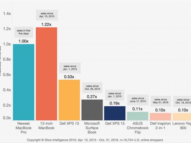 Theo một công ty nghiên cứu thương mại điện tử ở Mỹ, chiếc Macbook Pro 2016 hiện đang có số lượng đặt hàng cao kỉ lục. Doanh số bán hàng chỉ sau 2 tuần của chiếc Macbook Pro mới này hiện đã gần đuổi kịp chiếc Macbook 12 inch 2015, được ra mắt cách đây 1 năm rưỡi. Những con số biết nói: doanh thu MacBook Pro 2016 trong 5 ngày đầu tiên đạt 78% doanh thu của MacBook 2015, Slice Intelligence cho biết. Ngoài ra, dòng Macbook Pro 2016 có doanh số bán hàng cao gấp gần 4 lần so với đối thủ Surface Book của Microsoft.