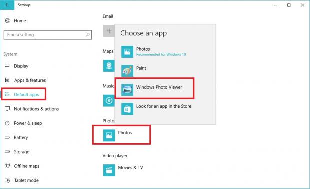 Bước 3: Mở menu cài đặt bằng cách nhấn phím 'Windows + i' > System > Default App > Di chuyển xuống 'Photo Viewer' > Nhấp vào Photo > Chọn Windows Photo Viewer.