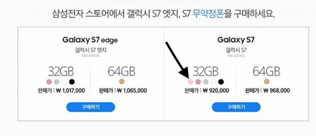 Màu hồng mới sẽ chỉ có trên phiên bản Galaxy S7 32GB