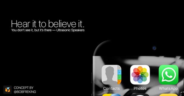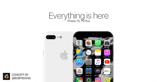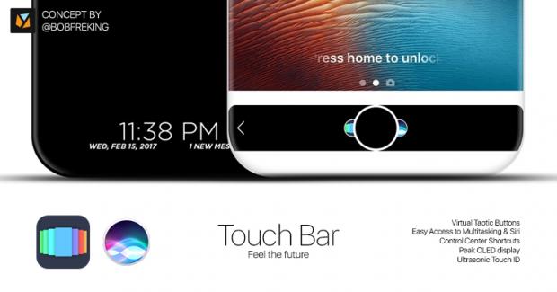 Bản concept iPhone 7s này có màn hình cong 2,5D không viền rất quyến rũ và thu hút hơn là phím Home cảm ứng Touch Bar. Phần Touch Bar này sẽ hiển thị màn hình luôn bật khi bạn tắt màn hình chủ để hiện các thông tin về ngày, giờ, thông báo. Vẫn sẽ có hai phiên bản màn hình 4,7 inch và 5,5 inch Retina OLED, cùng với công nghệ cảm ứng lực cũng như cảm biến vân tay.