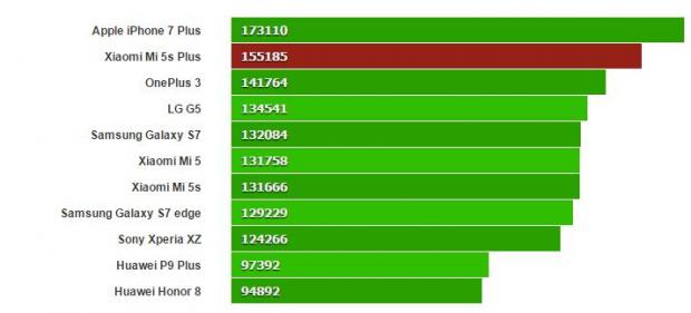 Thử nghiệm với phần mềm chấm điểm hiệu năng AnTuTu 6, Xiaomi Mi 5s Plus đạt số điểm hơn 155.000, mạnh nhất trong giới Android, chỉ thua mình chiếc iPhone 7 Plus từ Apple. Tất nhiên với cấu hình này thì Mi 5s Plus luôn có tốc độ xử lý và phản hồi cực nhanh, đồng thời trải nghiệm mọi game 3D nặng nhất hiện nay một cách trơn tru và mượt mà. Cấu hình trên Xiaomi Mi 5s Plus đủ để bạn dùng tốt mà không bị lạc hậu trong ít nhất 2 năm tới.