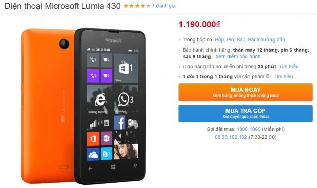 Lumia 430 hạ giá sốc chỉ còn xấp xỉ 1 triệu đồng
