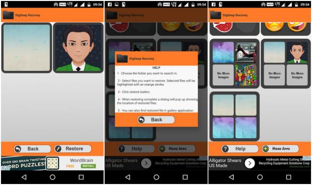 Về cơ bản, DigDeep Image Recovery (tải về tại đây) là công cụ/tiện ích có khả năng tìm và cho phép người dùng dễ dàng phục hồi lại các hình ảnh đã xóa trên cả bộ nhớ trong và thẻ SD mà không cần phải kết nối máy tính.