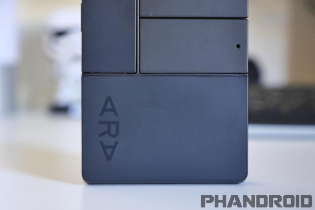 Theo chia sẻ của trang công nghệ này thì phần khung của Ara được làm từ kim loại, nó được dùng để gắn các module vào thông qua kết nối nam châm điện. Trong khi đó mặt sau được hoàn thiện từ nhựa mềm khá độc đáo. Có vẻ như chiếc A8A01 này là bản dành cho nhà phát triển, máy có kích thước khá to và dày tới 12,5mm, dày hơn hẳn bất cứ smartphone Android nào có mặt trên thị trường trong vòng 2 năm trở lại đây. “Bạn sẽ thấy như đang cầm cục gạch khi dùng Ara”, Android Central nhận xét.