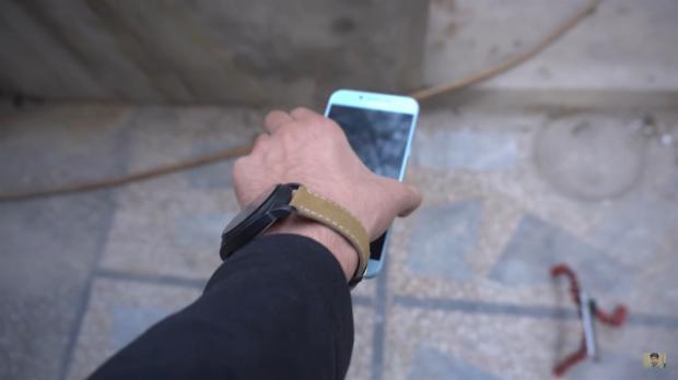 Người thử nghiệm đã thả rơi Galaxy A8 2016 với các phương án khác nhau như thả mặt dưới tiếp xúc mặt bê tông, cạnh dưới tiếp xúc trước và cuối cùng là màn hình tiếp xúc trước. Trong các trường hợp này, Galaxy A8 2016 đều tỏ ra chắc chắn và “trụ vững”, các vết trầy xước cũng khá nhỏ, tuy nhiên mình thấy mặt sàn bê tông là khá nhẵn, nếu như gồ ghề hay có đá vụn thì thường sẽ gây thiệt hại nhiều hơn.