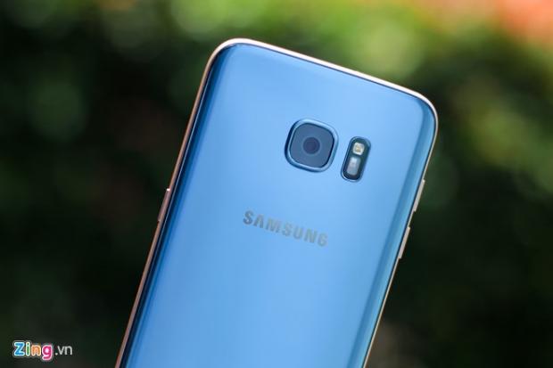 Tất cả các chi tiết như loa ngoài, màu chữ Samsung đều sử dụng màu xanh. Galaxy S7 edge có camera trước độ phân giải 5 MP, khẩu độ f/1.7.