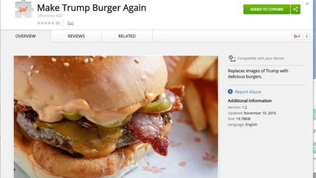 Tiện ích mở rộng (extension) mang tên “Make Trump Burger Again” và được phát triển bởi Daragh Kan, người đồng sáng lập chuỗi cửa hàng bánh Mr.Burger tại Úc. Sau khi cài đặt, extension sẽ tự động nhận diện gương mặt của tỷ phú Donald Trump và biến thành một chiếc hamburger phô mai.