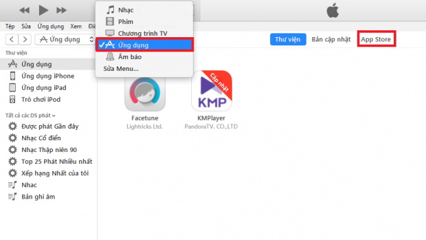 Lựa chọn Ứng dụng để vào kho ứng dụng Appstore. Và tìm lựa chọn Top App miễn phí.