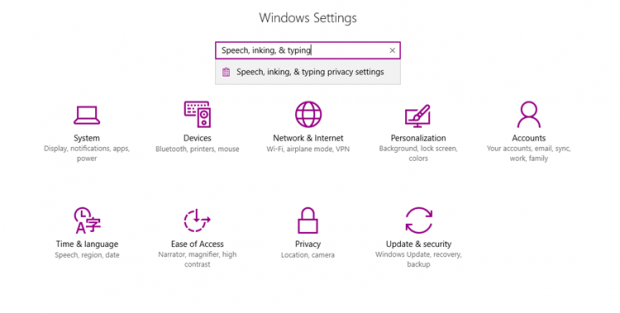 B2: Nhập vào khung tìm kiếm: Speech, inking, & typing và mở cửa sổ tùy chọn này