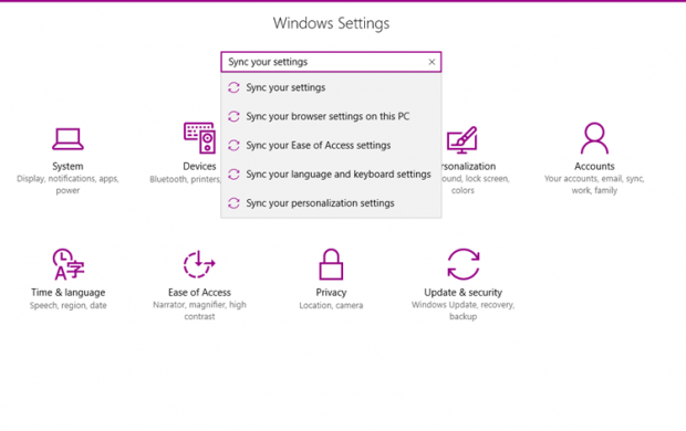 B1: Mở trình Settings từ thanh Start MenuB2: Nhập vào khung tìm kiếm: Sync your settings và mở cửa sổ tùy chọn này