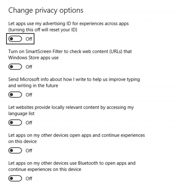 Off' />Tắt ID quảng cáo của máy trên Windows 10