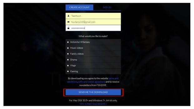 Bước 3: Điền đầy đủ thông tin, đặc biệt bạn phải nhớ email này để active về sau. Kéo xuống cuối nhấp vào Send me the download.