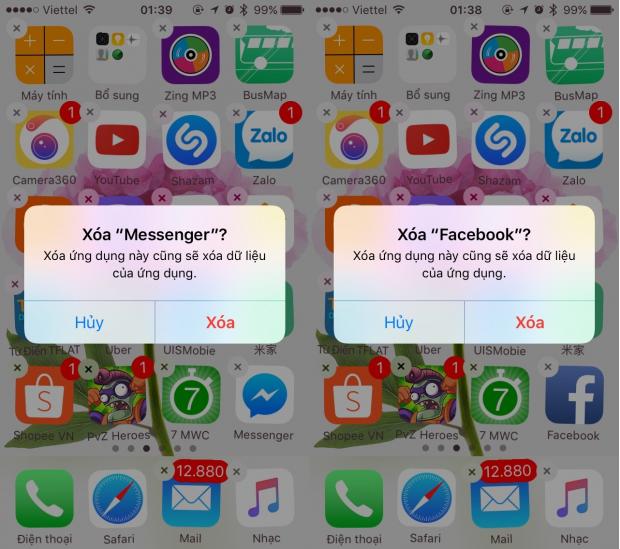 Để tiết kiệm bộ nhớ thiết bị, trước tiên hãy mạnh tay xóa hẳn Facebook và Messenger.