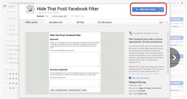 Để thực hiện việc này, bạn chỉ cần tải về tiện ích trên Chrome mang tên Hide That Post: