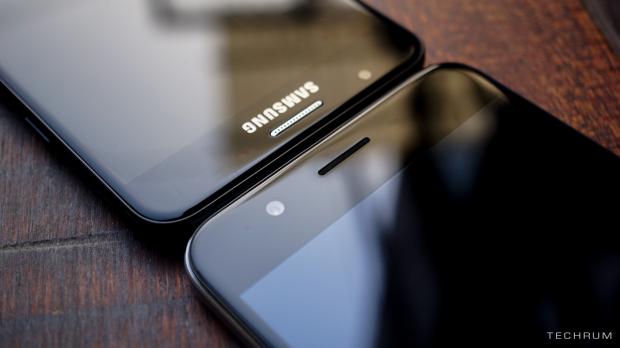 Mặt trước của cả hai đều hòa quyện một màu đen bóng tuyệt đẹp, nhưng với độ sâu của màn hình AMOLED, có vẻ như màu đen từ Samsung ấn tượng hơn.