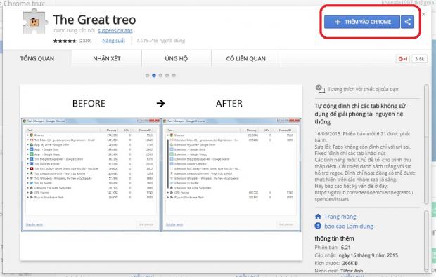 Để thực hiện việc này, bạn chỉ cần tải về tiện ích trên của hàng Chrome mang tên The Great Suspender: