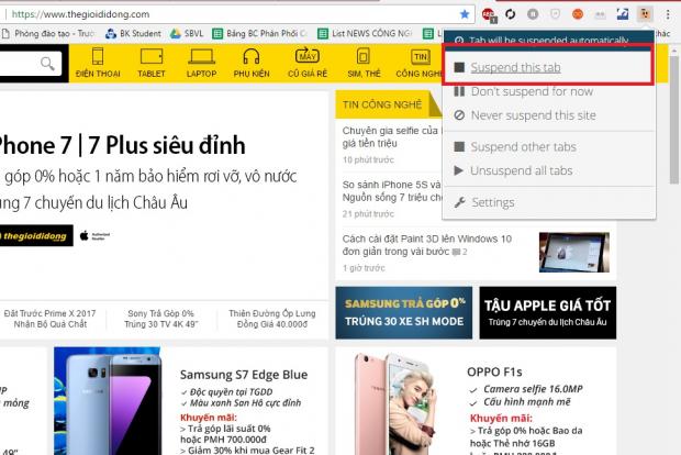 Để thực hiện, bạn mở trang web đó rồi nhấn vào biểu tượng của tiện ích và chọn Suspend this tab.