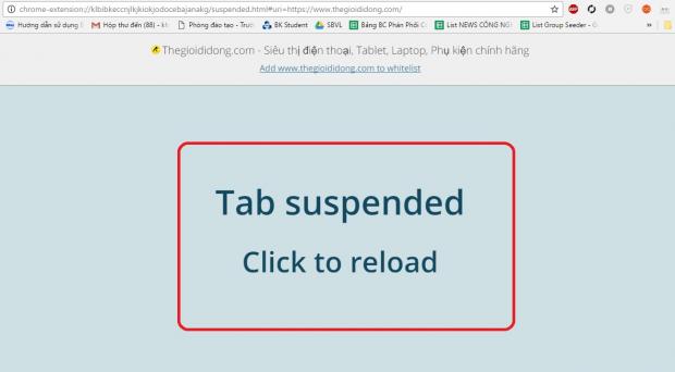 Nếu muốn tải lại trang, người đung chỉ cần click vào dòng Tab suspended Click ro reload là được.