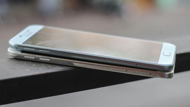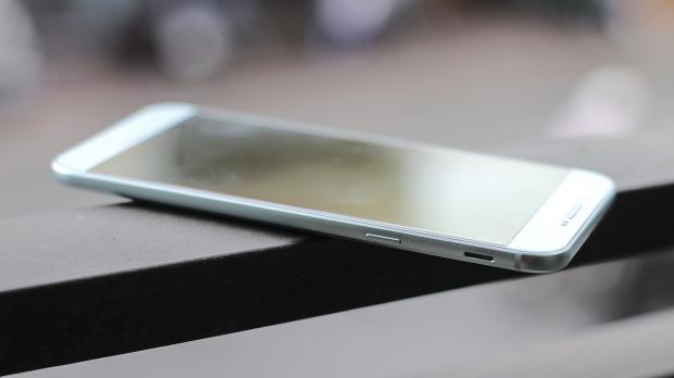 Điểm khác biệt bắt đầu xuất hiện ở mặt sau. Màu xanh coral trên vỏ kim loại của A8 khá nhợt nhạt hơn nếu so với màu xanh trên kính của S7 hay S7 Edge.