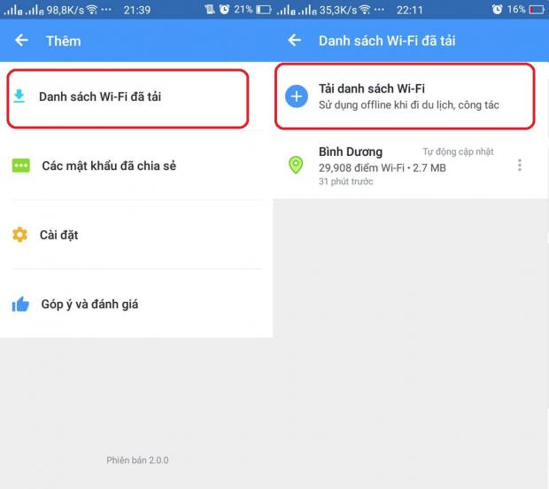 Ngoài ra, bạn cũng có thể tải trước các địa điểm wifi ở một khu vực nào đó bằng cách vào Thêm > Danh sách Wifi đã tải > Tải danh sánh Wifi.