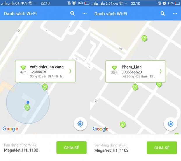Bạn chỉ cần chọn vào các địa điểm Wifi đã được chia sẻ và bấm kết nối. Hoặc chia sẻ những pass mà mình biết lên cho mọi người dùng.