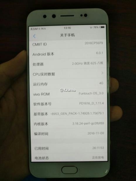 Vivo X9 cũng hé lộ cấu hình với màn hình 5.5 inch Full HD, vi xử lý Snapdragon 625, bộ nhớ RAM 4 GB và chạy trên nền tảng Android 6.0.1.