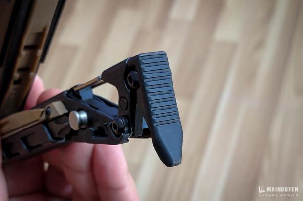Nói không ngoa khi Mut EOD là sản phẩm thuộc dòng kích thước lớn của Leatherman mà mình cảm thấy dễ dàng sử dụng nhất, các khớp khóa khi tháo lắp đều hoạt động trơn và mượt ngay từ lần đầu tiên sử dụng, nó giống hệt cảm giác khi sử dụng các thiết bị nhỏ như Leatherman Style PS và Style CS mà trước đây mình có giới thiệu qua. Cũng giống như các dòng sản phẩm như Charge hay Surge, Mut EOD cũng có khóa an toàn với tất cả các dụng cụ. Thân của nó cũng được làm từ thép không rỉ và phủ màu đen - black oxid trông rất bắt mắt và huyền bí. Bản Mut bình thường sẽ không có màu đen.