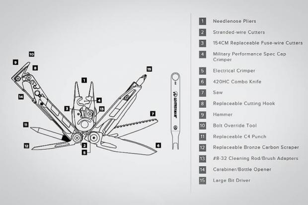 Leatherman Mut EOD có tổng cộng 17 dụng cụ chính khác nhau: