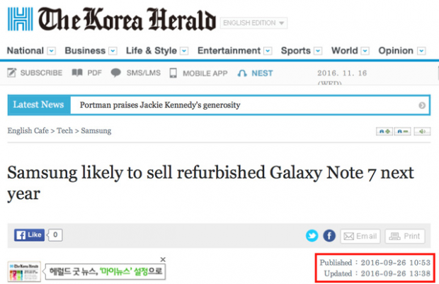 Hầu hết các trang tin đều lấy nguồn từ Korea Herald - một kênh thông tin uy tín tại Hàn Quốc. Nhưng có lẽ là do biên tập viên của trang SamMobile sơ xuất khi đăng lại tin này mà không chú ý đến việc nó đã được Korea Herald đưa từ ngày 26/9. Đó là thời điểm mà Samsung mới thu hồi Note 7 đợt đầu và có nhiều giả thuyết được đưa ra để giải quyết vấn đề này của họ.