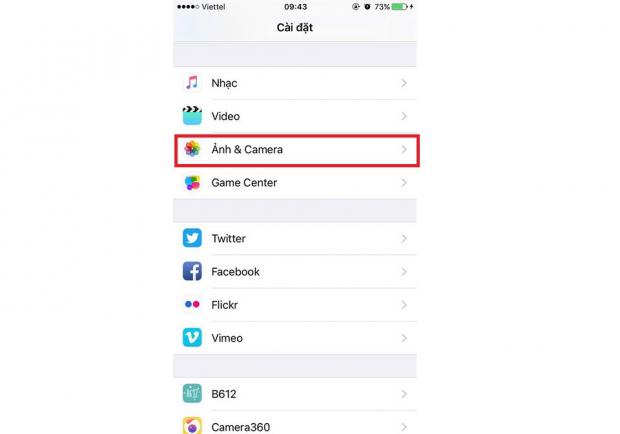 - Truy cập vào trong phần Cài đặt sau đó kéo xuống dưới để tìm kiếm phần Ảnh & Camera