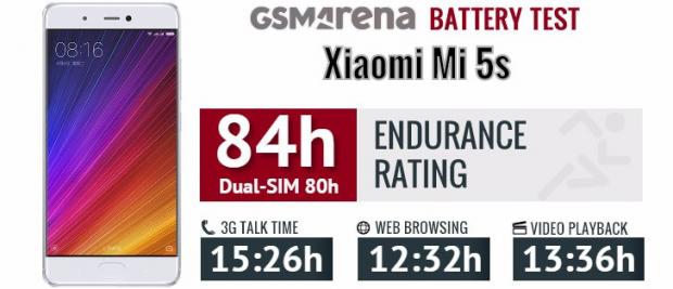 Xiaomi Mi 5s mang trên mình viên pin dung lượng 3200 mAh, cao hơn 200 mAh so với Mi 5. Thử nghiệm thực tế cho thấy Xiaomi Mi 5s có thể sử dụng đến 84 giờ, nghĩa là bạn có thể dùng máy đến hơn 3 ngày nếu mỗi ngày bạn sử dụng 1h cho gọi điện, duyệt web và xem video. Thời gian gọi thoại liên tục của Mi 5s là 15h26’, duyệt web liên tục bằng 3G là 12h32’ và xem video liên tục là 13h36’, những con số rất tốt khi đánh giá tuổi thọ pin smartphone.