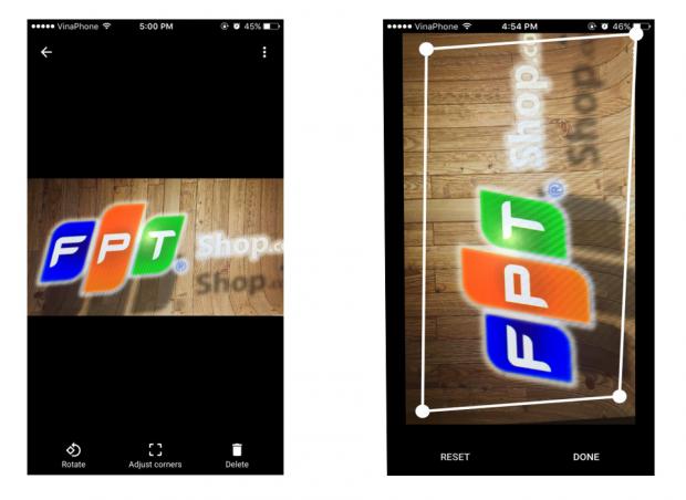 -Adjust corners: Chỉnh sửa lại vùng đã chọn. Chỉnh sửa xong bấm Done.