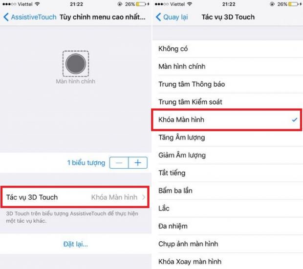 Chọn Tác vụ 3D Touch > Khoá màn hình.