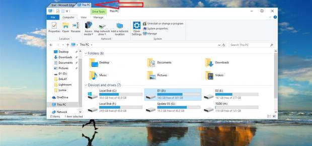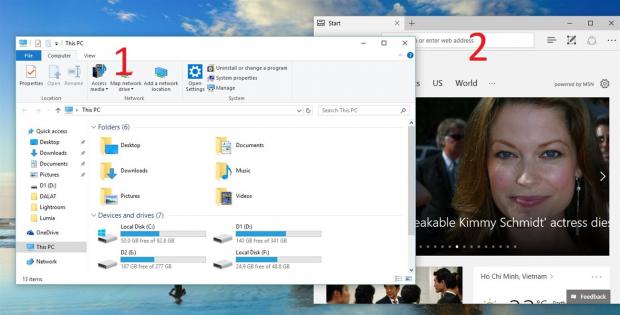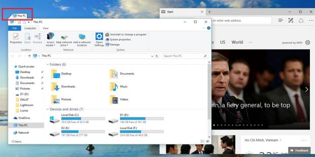 Bước 1: Đầu tiên, mở 2 cửa sổ bất kỳ (mình mở My Computer và trình duyệt Microsoft Edge).