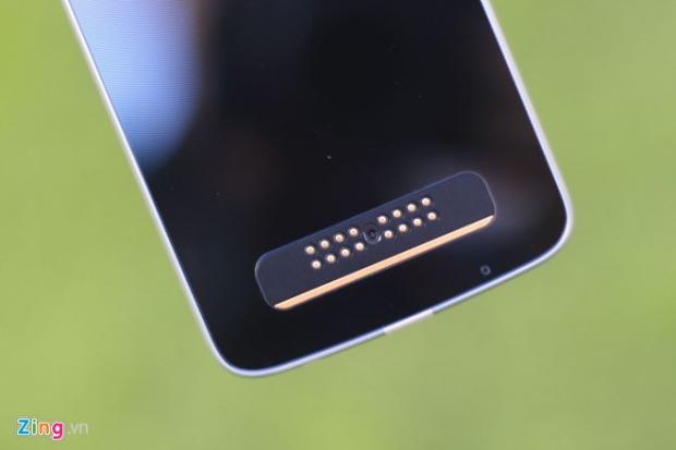 Mặc dù được đinh vị thấp hơn Moto Z và Z Force nhưng Z Play vẫn được trang bị các chấu kết nối cho phép tương thích với các phụ kiện Moto Mods.