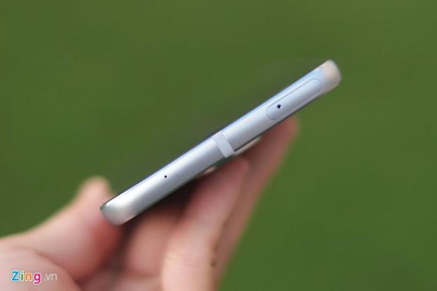 Khe cắm SIM ở cạnh trên, dải nhựa giúp bắt sóng tốt hơn nằm chính giữa.