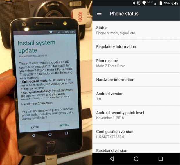 Được biết, Moto Z và Moto Z Force là 2 điện thoại Motorola đầu tiên có được Android Nougat ở Mỹ. Trước khi kết thúc năm nay, Motorola có thể sẽ cập nhật phiên bản hệ điều hành mới lên tất cả các biến thể khác của Moto Z cũng như dòng sản phẩm Moto G4 series và các smartphone ra mắt từ năm 2015 được hỗ trợ.