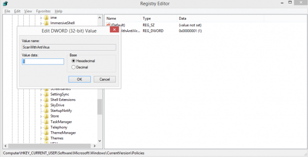 Đầu tiên, bạn mở hộp thoại Run bằng tổ hợp phím Windows + R và nhập vào từ khóa regedit > Enter để mở Registry, và tìm theo đường dẫn sau HKEY_CURRENT_USERSoftwareMicrosoftWindowsCurre ntVersionPoliciesAttachments, Nếu không tìm thấy khóa Attachments, bạn hãy tạo ra nó bằng cách kích chuột phải và chọn New > DWORD (32-bit), rồi đặt tên ScanWithAntiVirus với giá trị là 1.