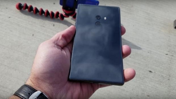 Trong video thử nghiệm bởi kênh YouTube quen thuộc JerryRigEverything, Mi MIX đã được thử nghiệm ở 3 độ cao khác nhau như từ 15 cm, từ 30 cm và sau đó là 60 cm. Ở 2 độ cao 15 và 30 cm, Xiaomi được thả rơi cho mặt lưng tiếp xúc nền bê tông, mọi thứ vẫn chưa có chuyện gì xảy ra, máy vẫn không bị rạn vỡ.