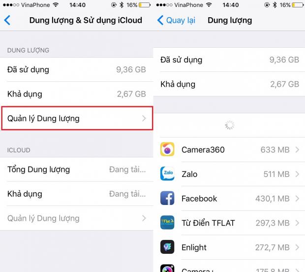 Sau đó chọn Dung lượng & Sử dụng iCloud > Quản lý dung lượng ở Dung lượng để kiểm tra.