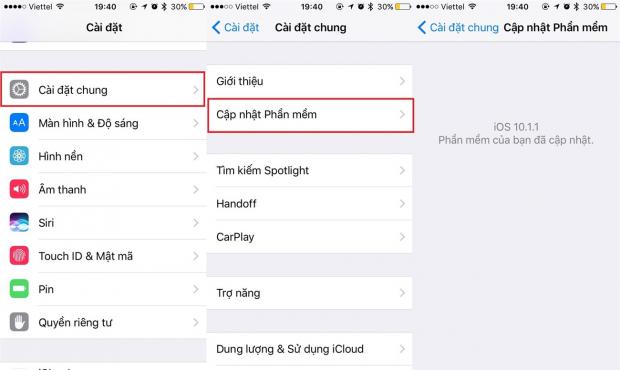 Ngoài ra, người dùng các thiết bị từ Apple vẫn hay nhận được cảnh báo các phiên bản cũ sẽ gây mất ổn định cho iPhone, iPad. Vì thế hãy vào Cài đặt > Cài đặt chung > Cập nhật phần mềm để kiểm tra thông tin cập nhật của thiết bị.