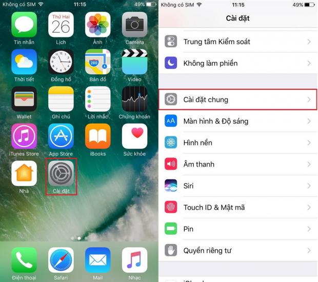 Để khôi phục iPhone, vào Cài đặt > Cài đặt chung.